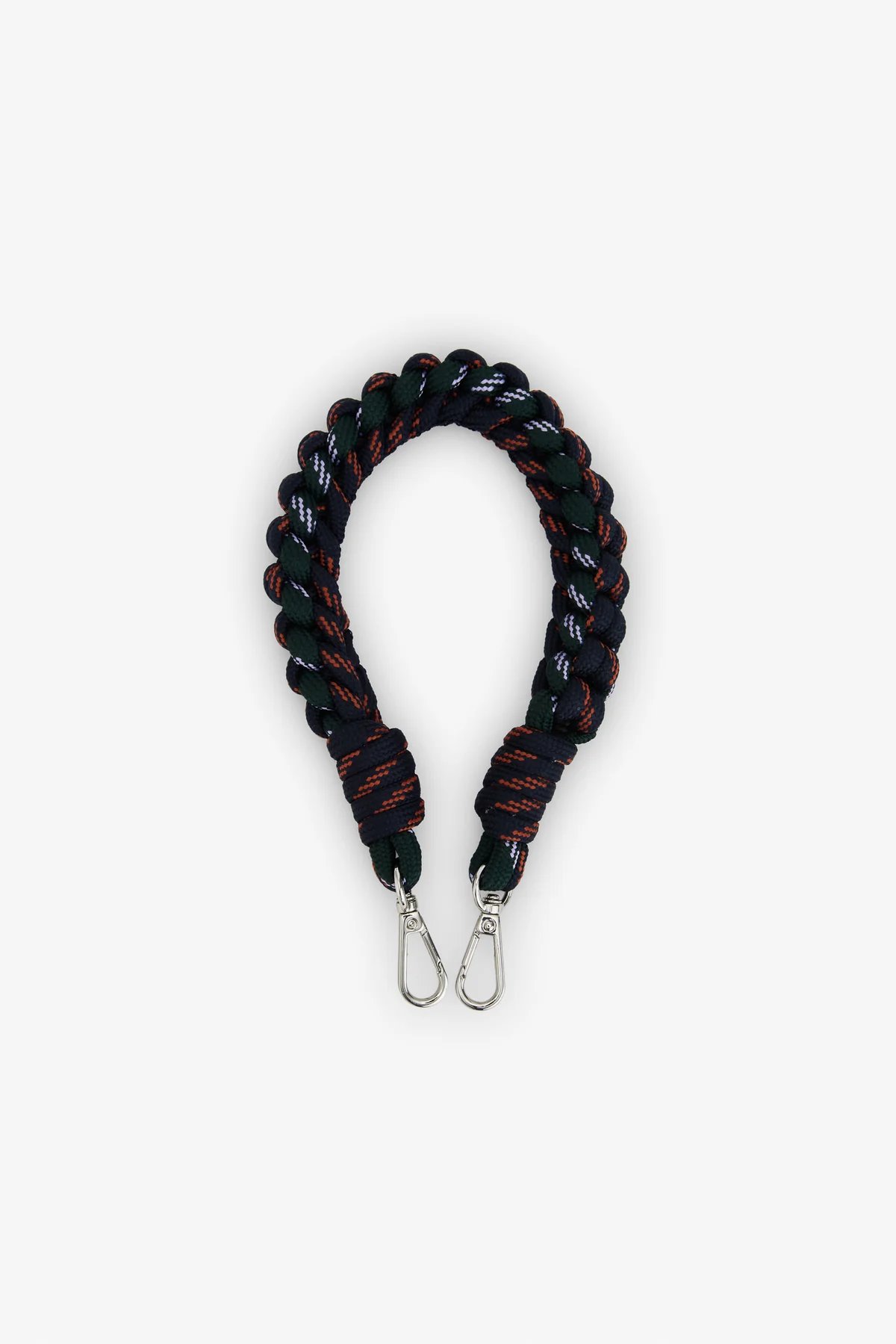 Están confeccionadas con cuerda de escalada en diferentes colores, cuidadosamente trenzadas entre sí, lo que les aporta resistencia y un toque único. Incorporan un mosquetón en cada extremo para que podáis engancharlas fácilmente donde queráis y transformar vuestro bolso en segundos.