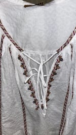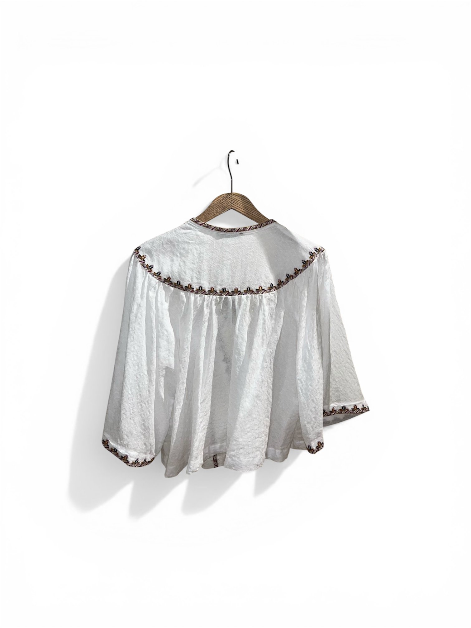 Blusa de inspiración bohemia en color blanco, confeccionada en un tejido ligero con textura.