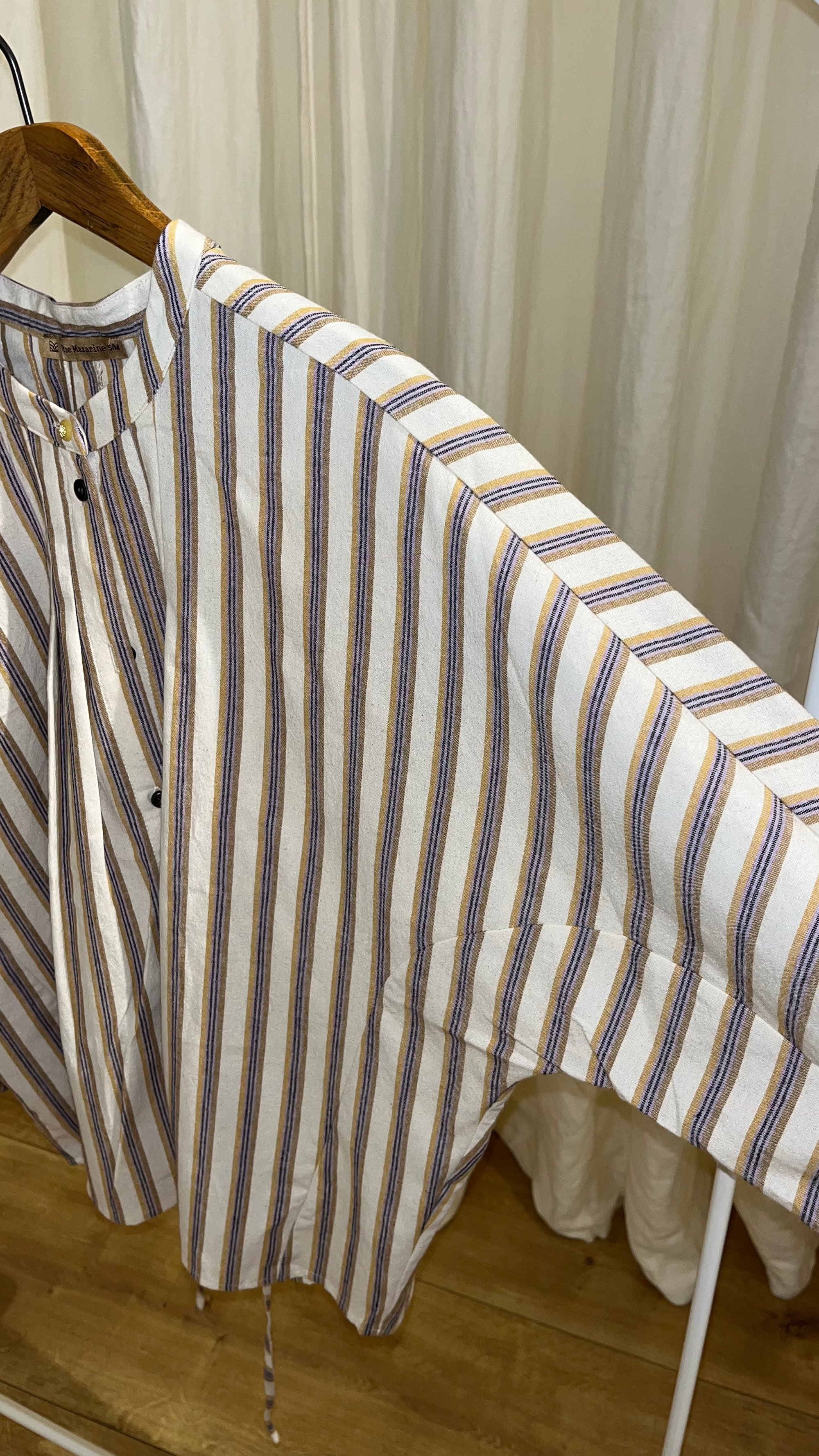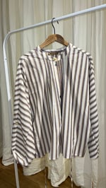 Blusa con rayas verticales en color beige.