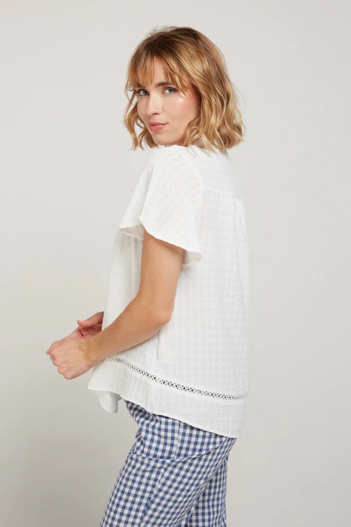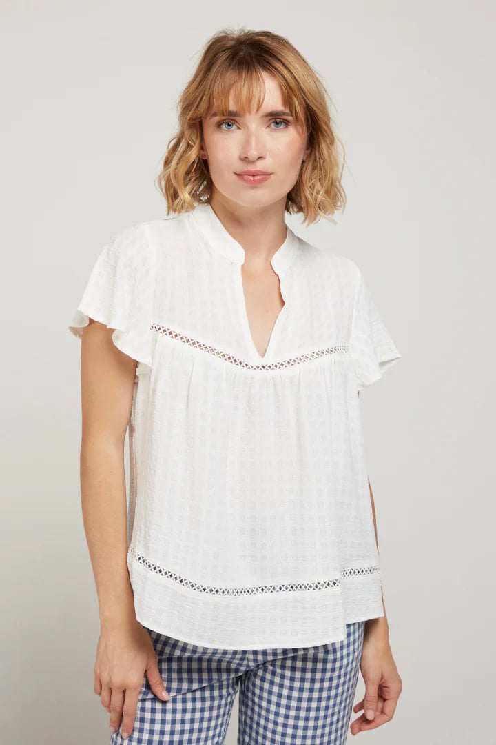 Mangas tulipán y delicado corte cruzado en el hombro.