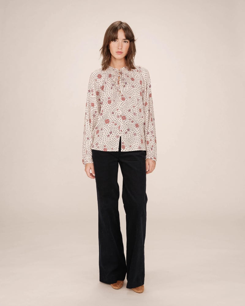 Blusa fluida de manga larga y estampado floral.