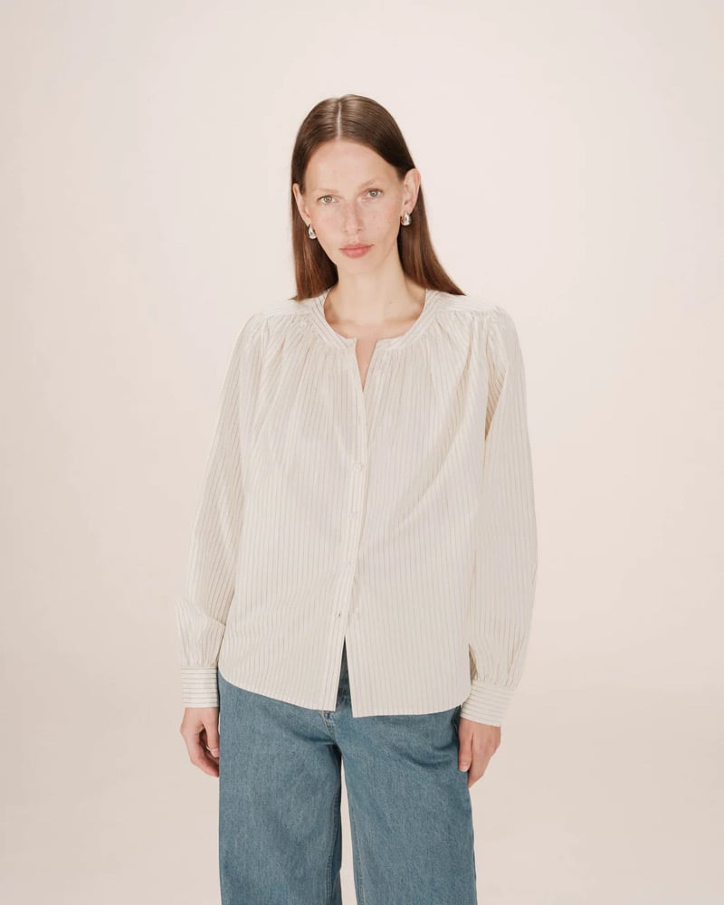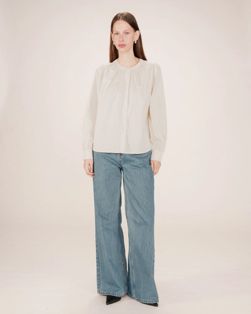 Completa el look: La blusa a rayas SISSI se lleva con los vaqueros anchos JAMES light blue para un look casual chic.