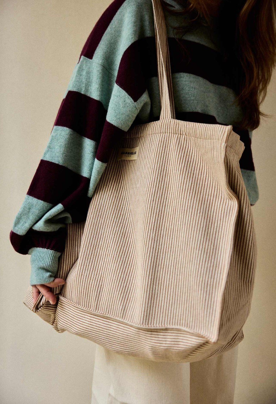 El bolso de fin de semana de algodón Clay Stripes es perfecto para tus escapadas cortas. Ligero, práctico y elegante, permite llevar fácilmente lo esencial a la vez que añade un sutil toque gráfico.
