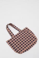 Bolso vichy con dos asas y forro a tono, con el bajo y los laterales cuadrados para un diseño elegante y práctico.