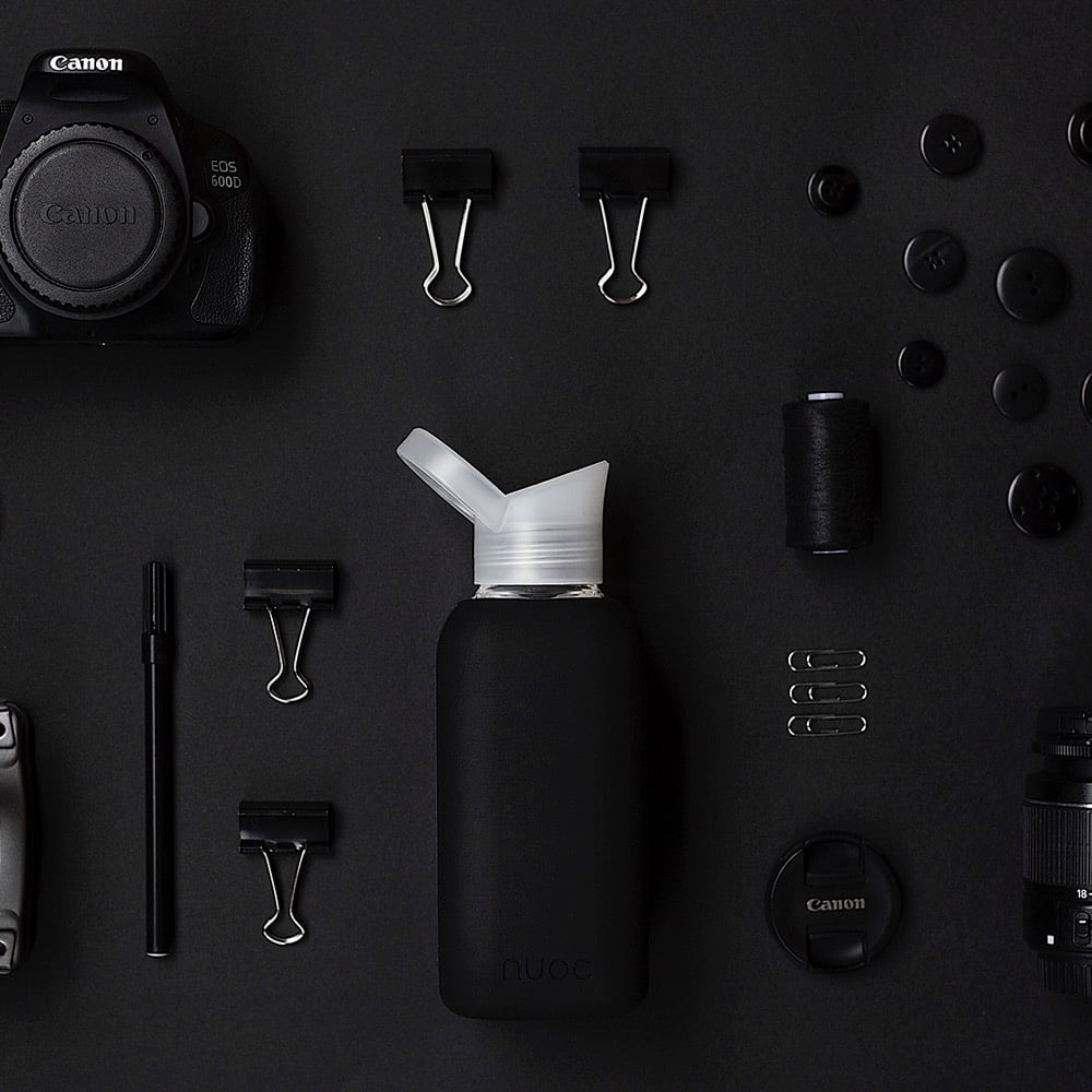Botella de vidrio de borosilicato de alta calidad cubierta por una suave funda de silicona para mayor resistencia y durabilidad. Es sostenible, apta para el lavavajillas, 100% reciclable e infinitamente reutilizable.