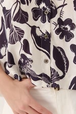 Escote ligeramente abierto con tapeta de botones en la parte delantera.