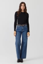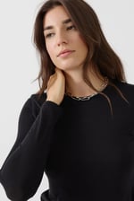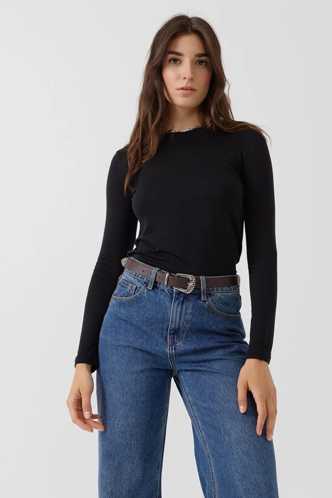 Camiseta lisa, manga larga, cuello redondo.