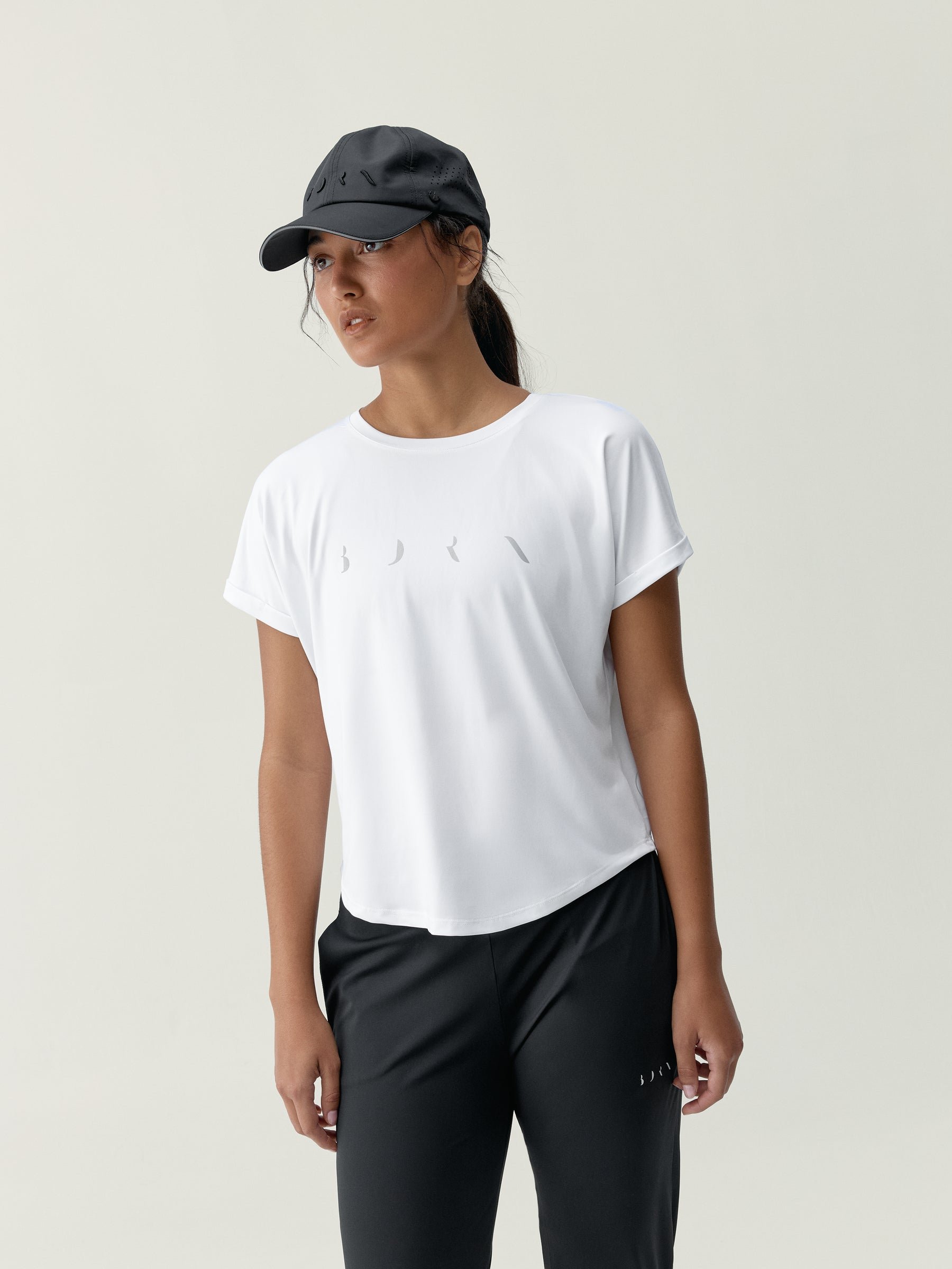 Camiseta deportiva con patrón que cubre el hombro efecto manga caída.