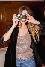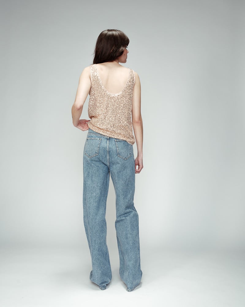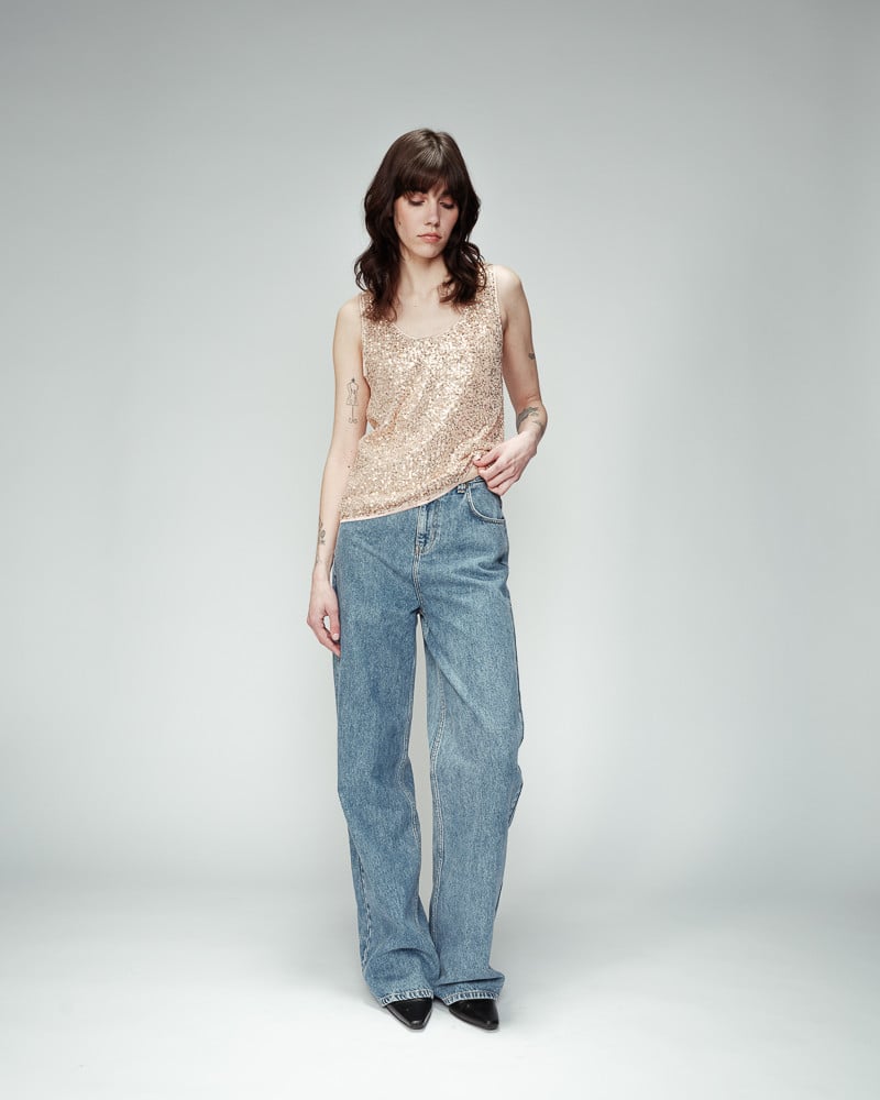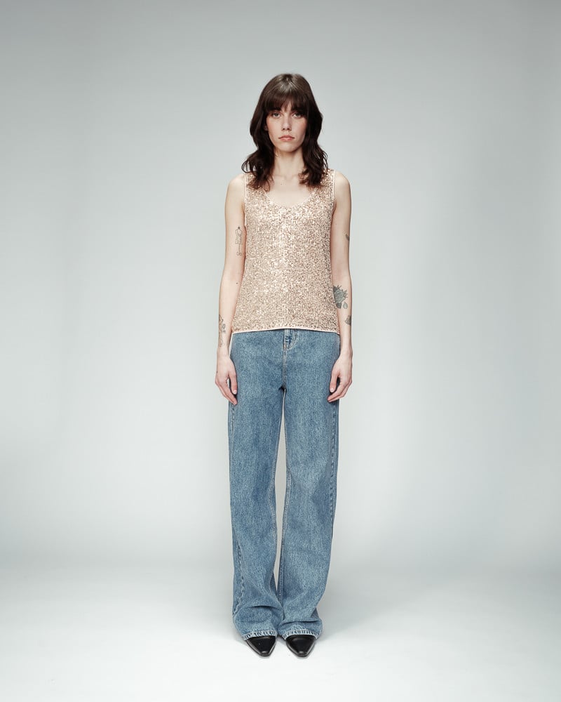 La camiseta sin mangas corta ODE es una camiseta decorada con lentejuelas que crea una silueta brillante y festiva.