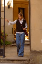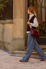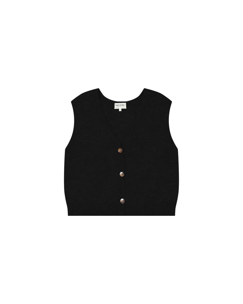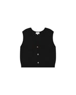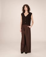 Completa el look: El cárdigan sin mangas SANTA se lleva con los vaqueros anchos JAMES para una silueta relajada y moderna.