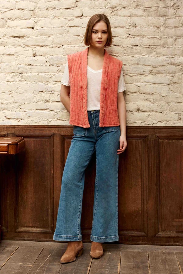 Chaleco de algodón de doble gasa acolchado. Efecto desvanecido