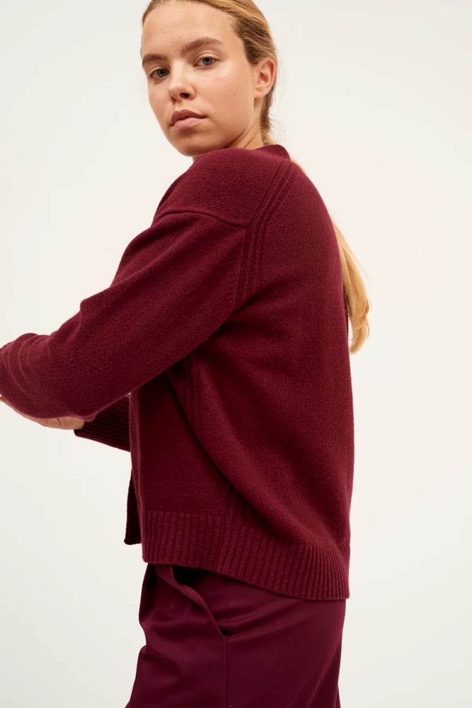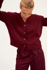 La chaqueta Laurent de punto de galga fina, es un cárdigan de mezcla de lana, con un fit oversize y botones en el delantero.