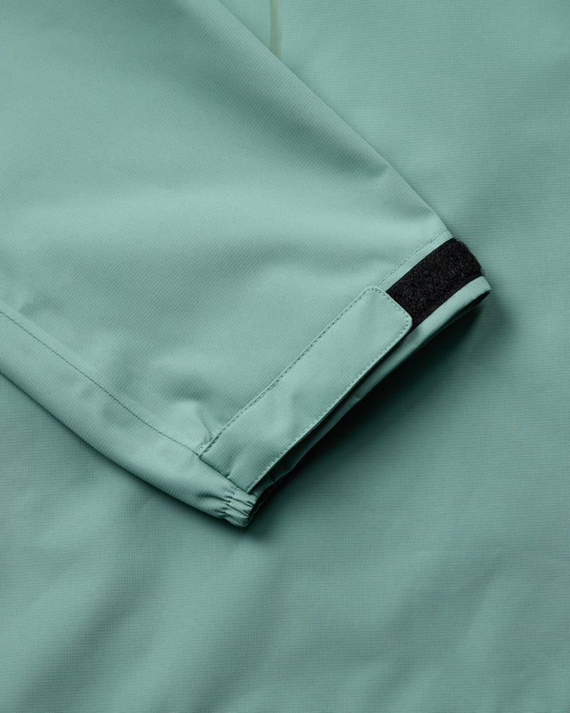 Es 100 % impermeable con costuras pegadas y una capucha empacable en el cuello.