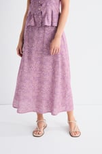 Falda larga estampada con vuelo, goma plana en la espalda