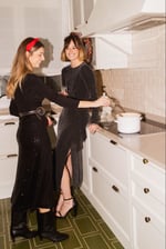 Completa el look: la falda de lentejuelas OBSESSION se lleva con el jersey de cuello alto liso o con la camisa oversize NESRINE, para un look moderno y moderno.