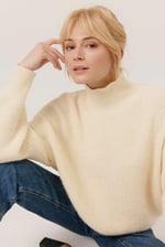 Suéter de cuello alto de punto acanalado con corte ligeramente holgado y ribete acanalado.