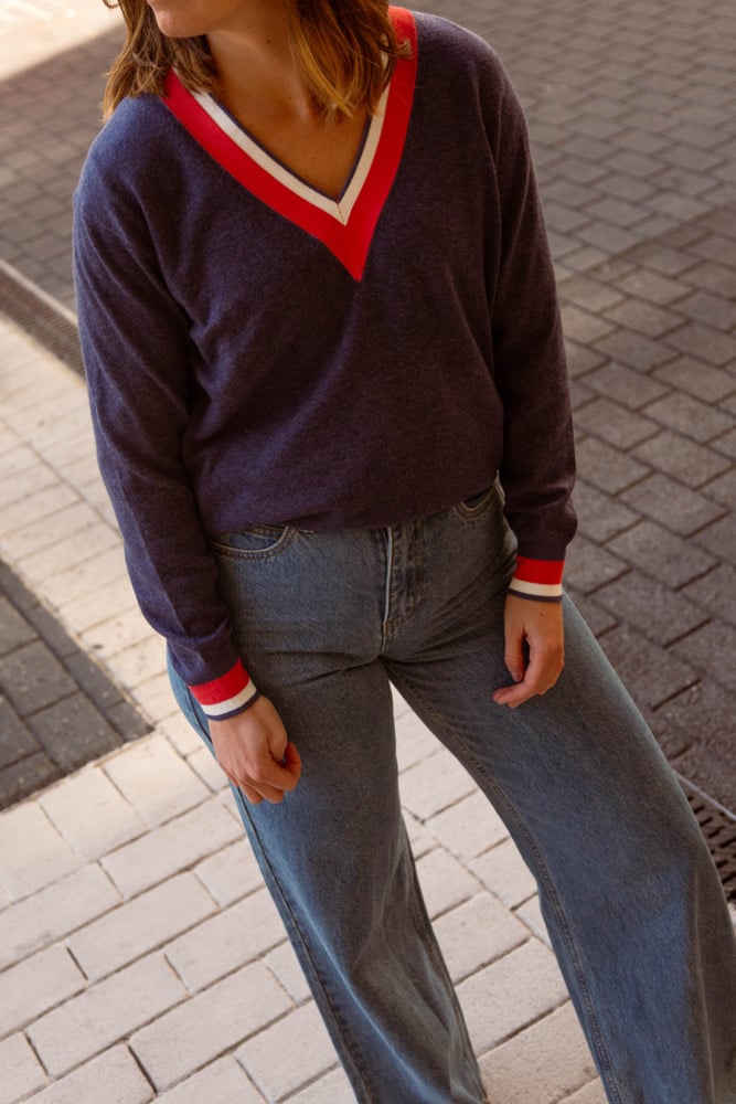 El escote en pico con detalle tricolor aporta un toque de luz y energía que eleva cualquier look.
