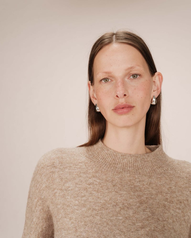 Completa el look: el jersey de cuello alto SALTY se lleva con los vaqueros anchos JAMES para un look casual.
