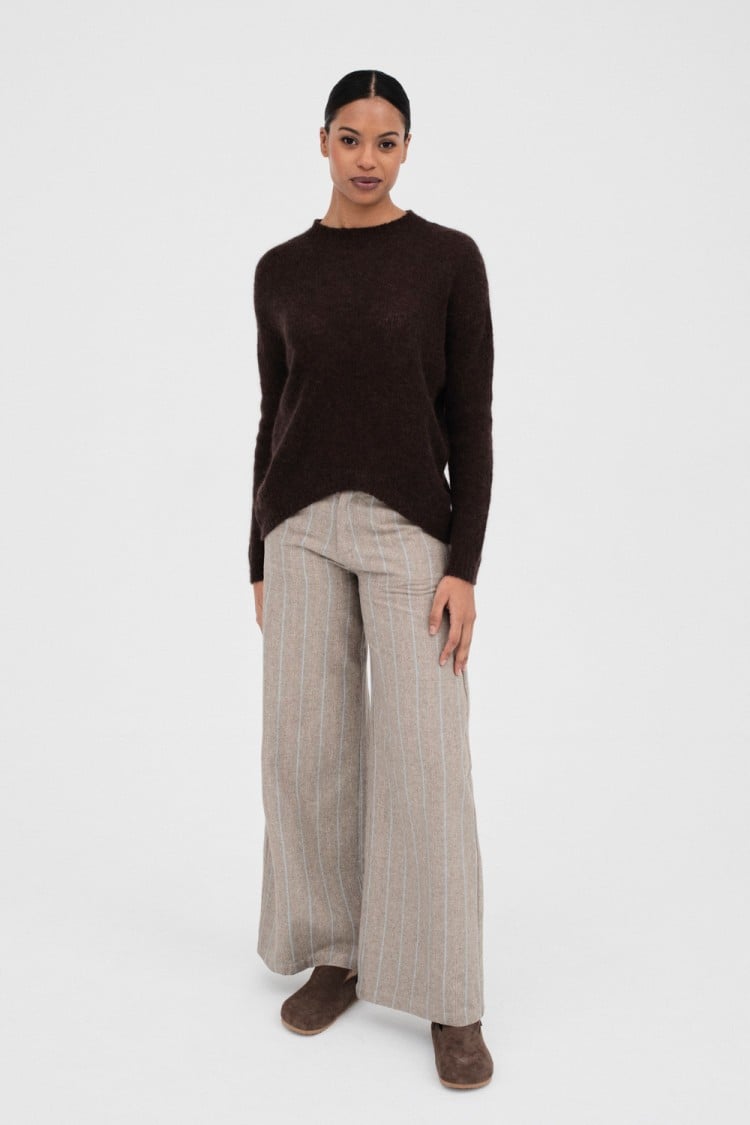 Es de tricot integral y presenta acabados en canalé, bajo redondeado y un diseño ligeramente más corto en el delantero.