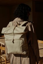 Fabricada en piel vegana de alta calidad y con cremallera YKK negra para cerrarla en la parte superior. La mochila cuenta con un compartimento acolchado para portátil en el interior.