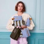 Neceser con rayas azules y verdes.