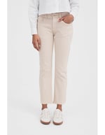 Brickell es un pantalón crop de twill, tiro medio y corte slim flare, que aporta un toque moderno y casual. Color Beige.