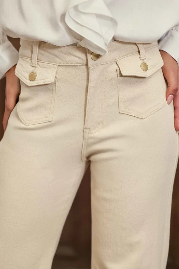 Vaqueros beige con corte amplio y acampanado