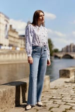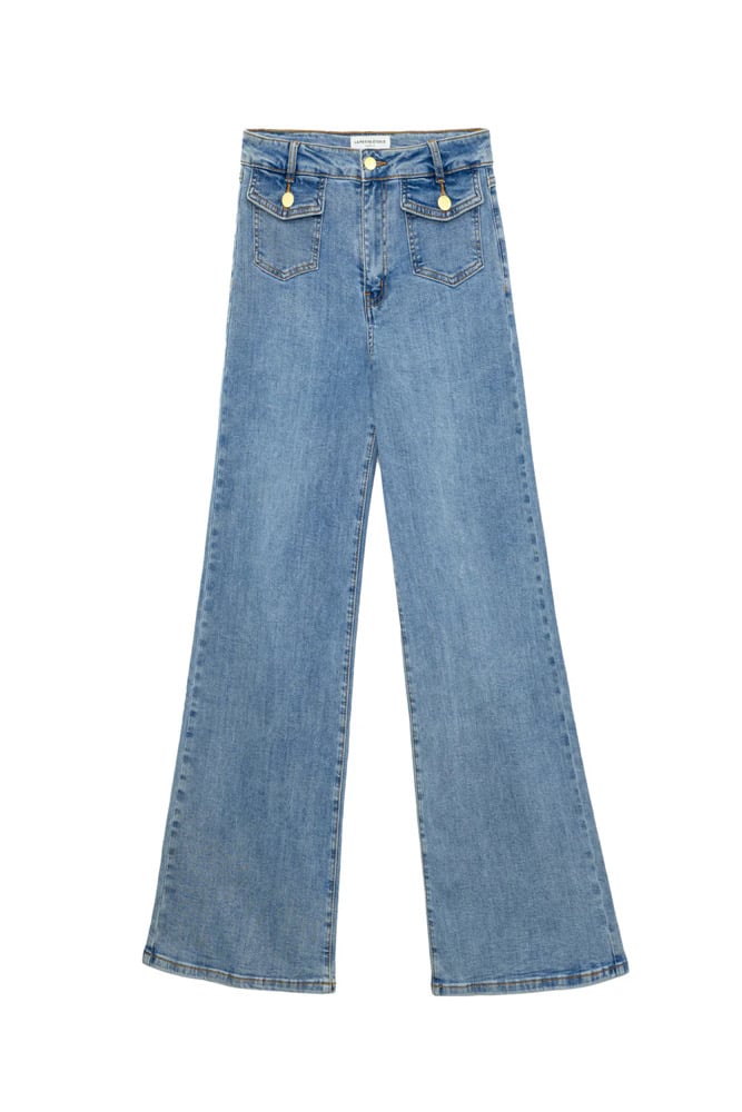 Los pantalones Peyton adoptan un corte acampanado ancho y de cintura alta.