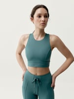 Sujetador deportivo de sujeción media alta con elegante diseño en la espalda, mantiene la sujeción y proporciona una buena ventilación.