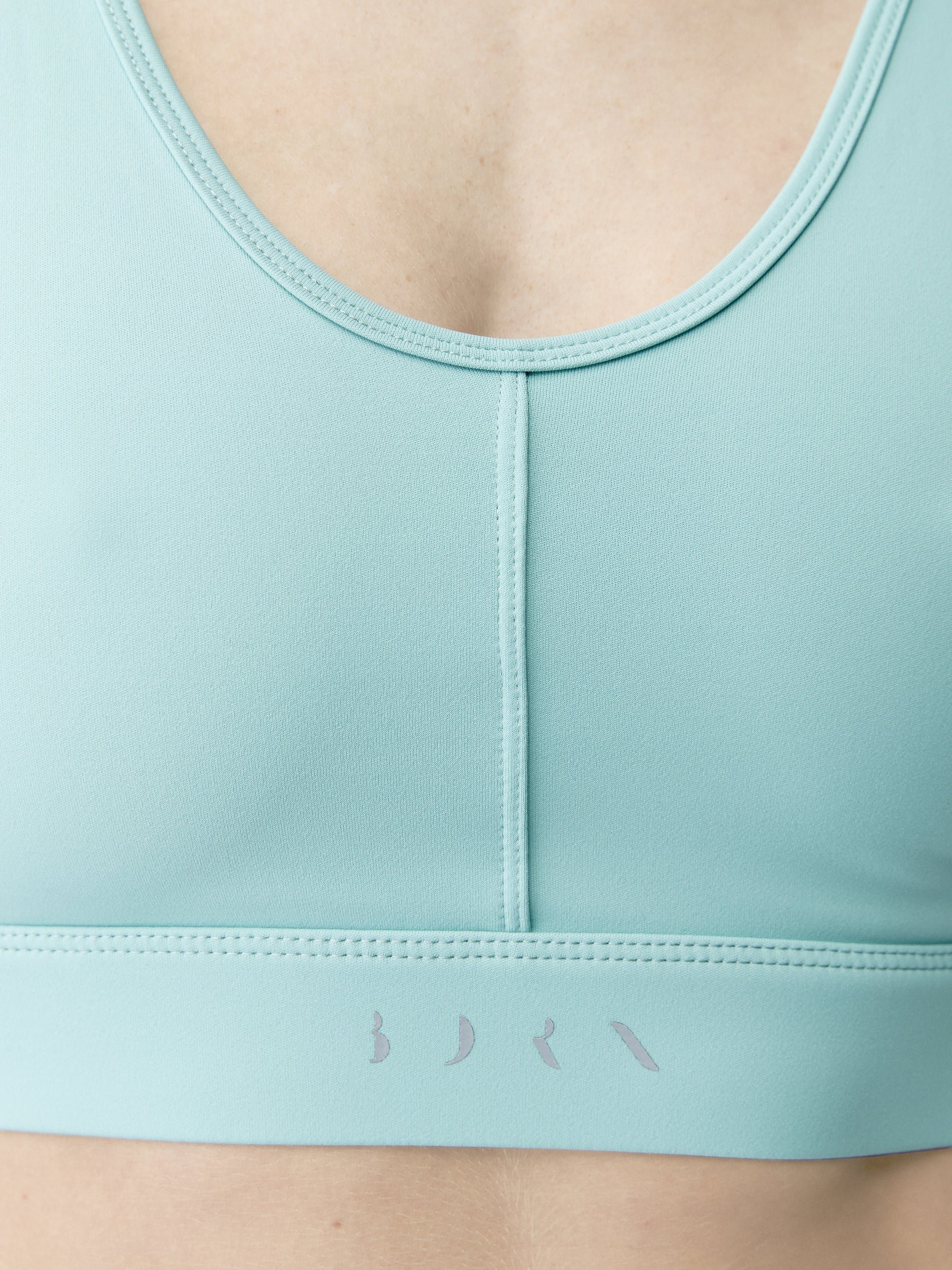 Sujetador deportivo con atractivo escote en pico con tirantes anchos de sujeción media.