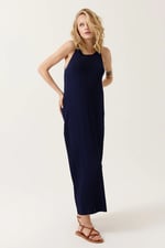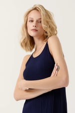 Vestido midi con tirantes finos y ajustables.