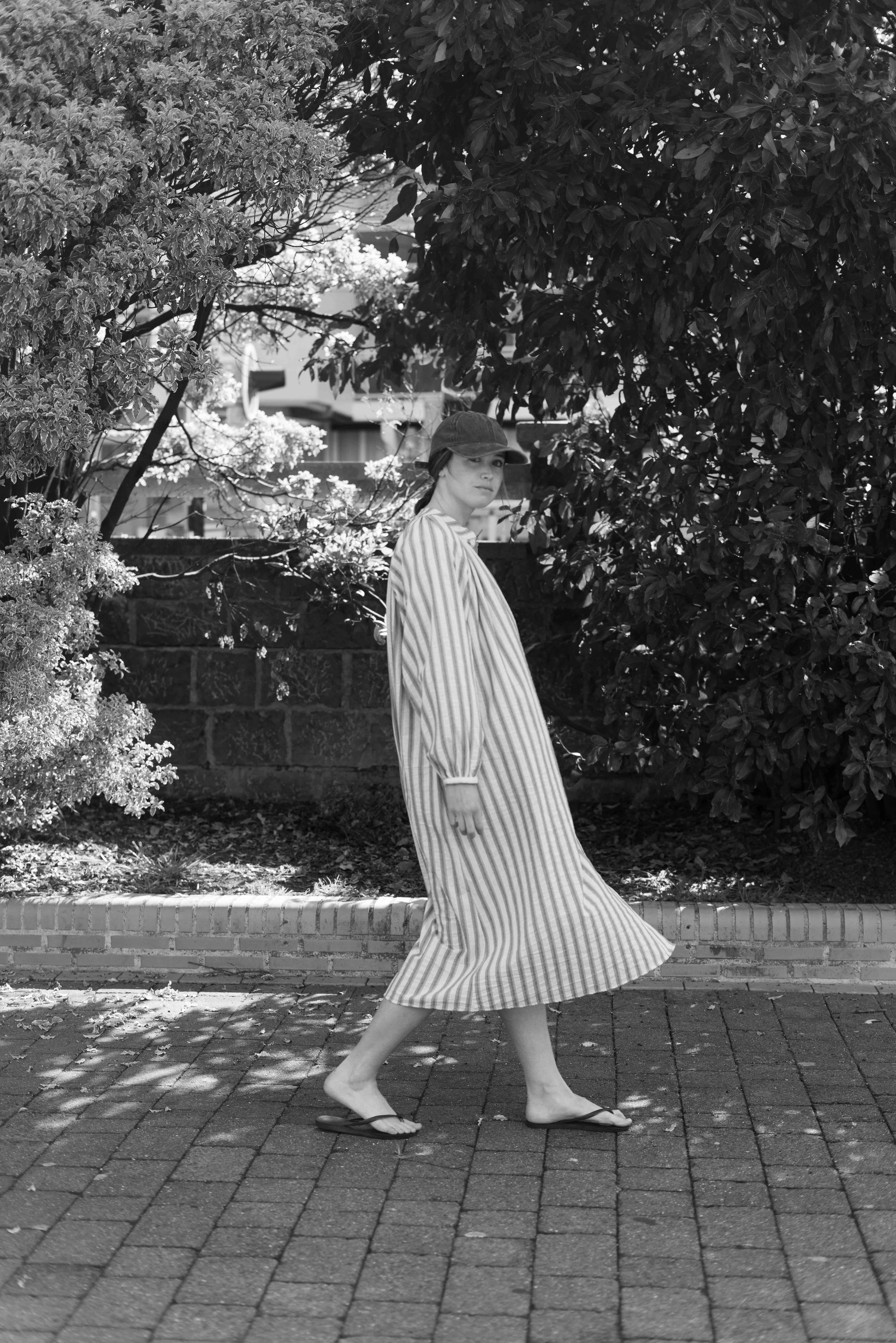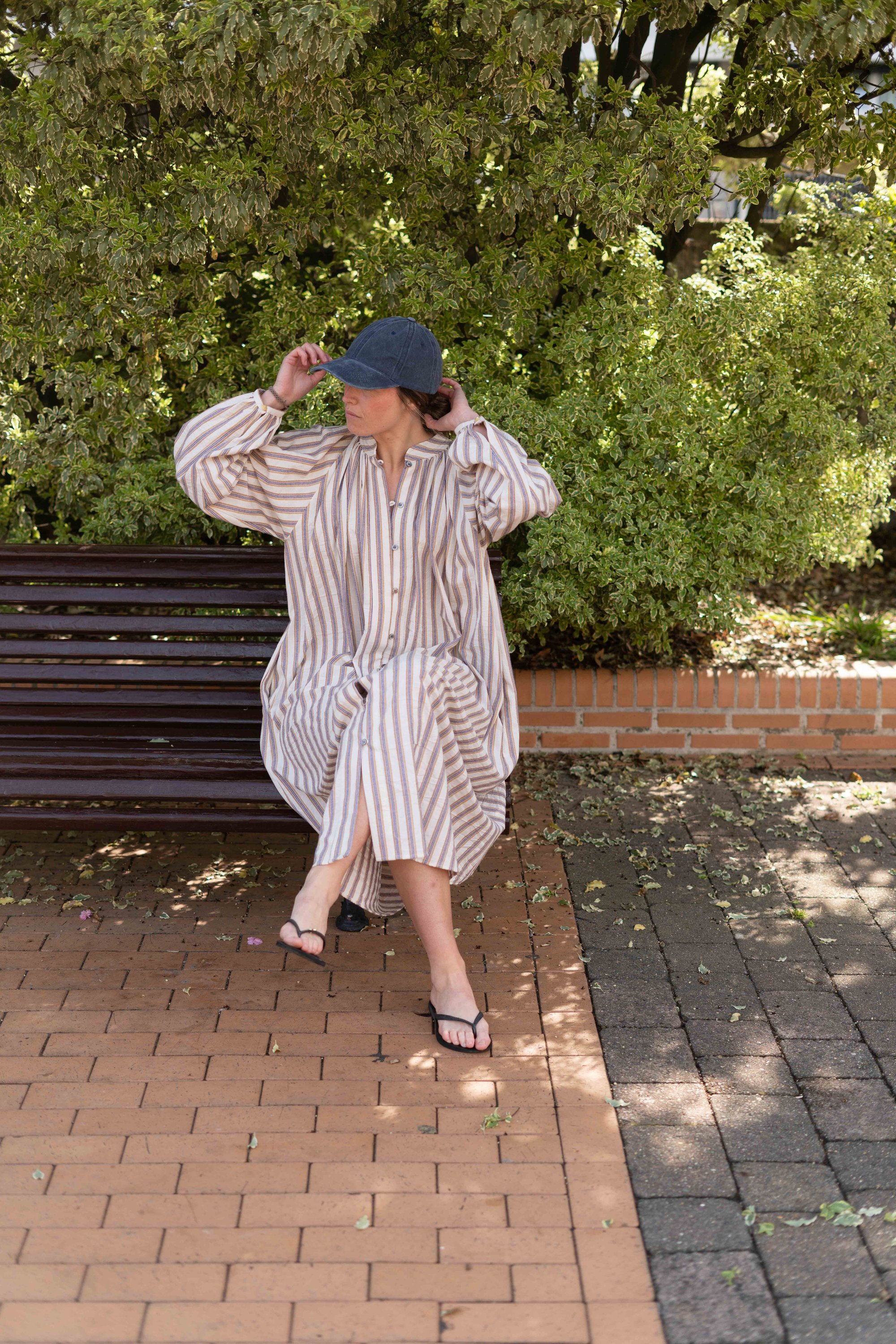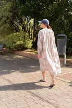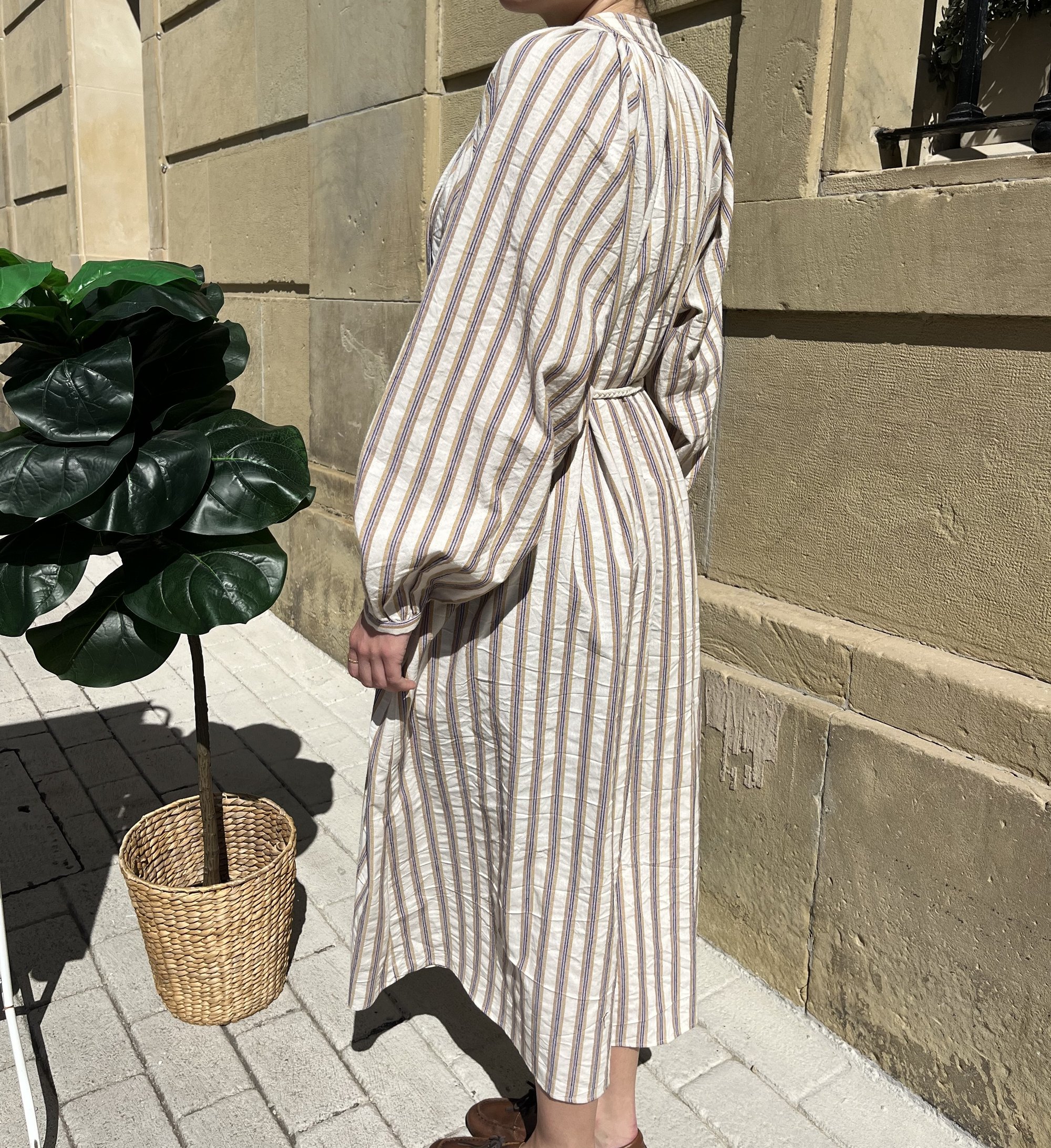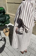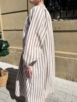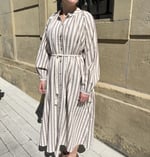Vestido largo con rayas verticales. Mangas largas.