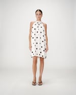 Abertura en forma de lágrima en la espalda. Escote fruncido